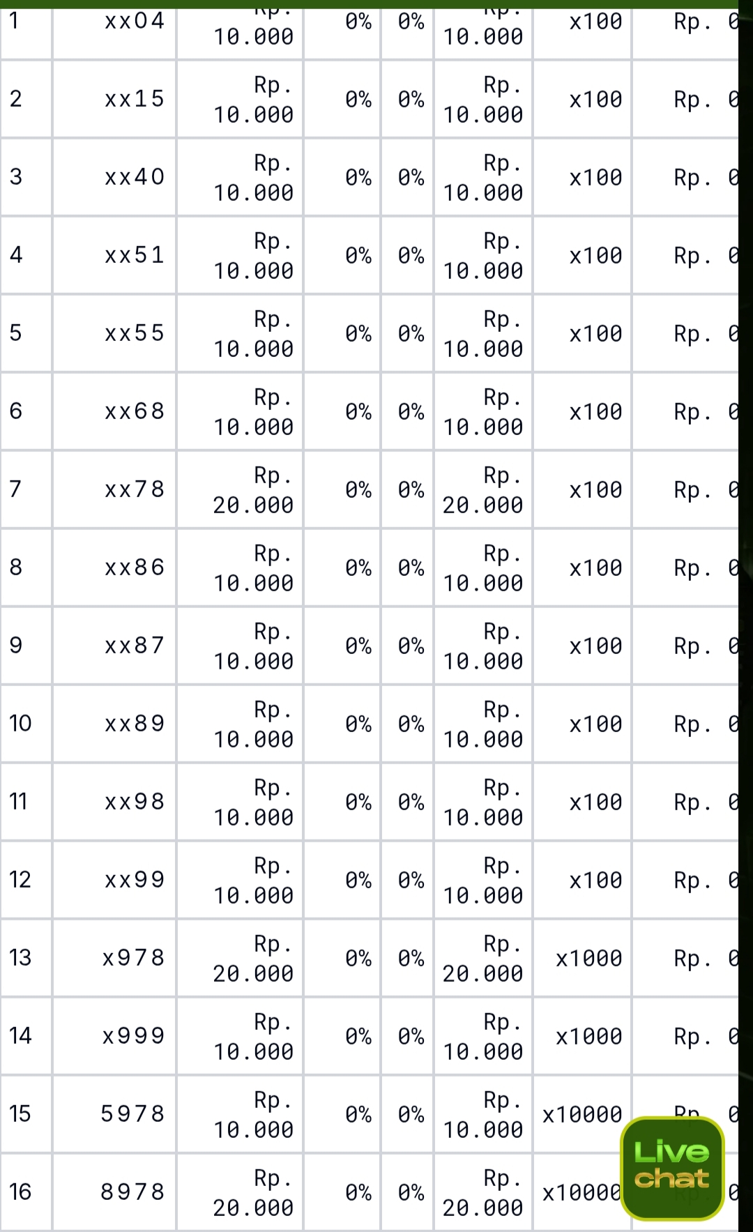 | Rumus Kontrol 4 berdasarkan kepala harian | 2346789 1235670 |