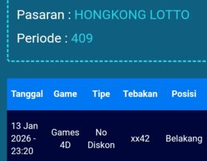 Prediksi Hongkong Lotto Jumat, 30-01-2026 Merupakan Prediksi Otomatis yang menggabungkan Metode Kalender Togel Dengan LN Generator yang akurasi prediksinya sudah kita ketahui bersama. Jadi harap Maklum Jika kadang meleset Prediksi Hongkong Lotto kita. Jadikan ini sebagai perbandingan saja dan tetap Utamakan karya sendiri