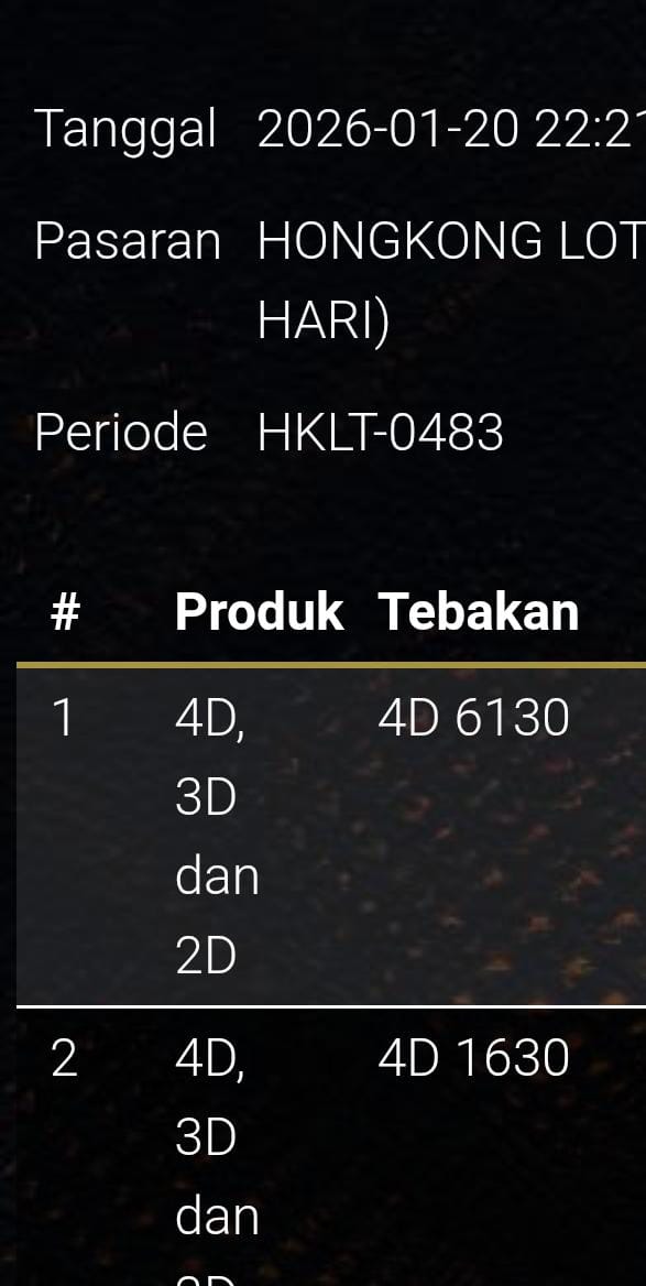 Prediksi Hongkong Lotto Jumat, 30-01-2026 Merupakan Prediksi Otomatis yang menggabungkan Metode Kalender Togel Dengan LN Generator yang akurasi prediksinya sudah kita ketahui bersama. Jadi harap Maklum Jika kadang meleset Prediksi Hongkong Lotto kita. Jadikan ini sebagai perbandingan saja dan tetap Utamakan karya sendiri