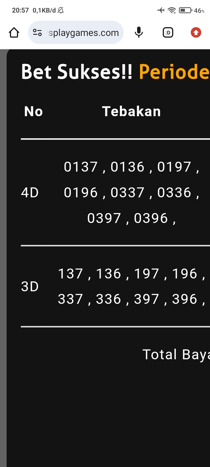Prediksi Ini Berubah secara otomatis sesuai hari dan result pasaran masing-masing. Untuk melihat prediksi sebelumnya klik tombol nomor hitam diatas