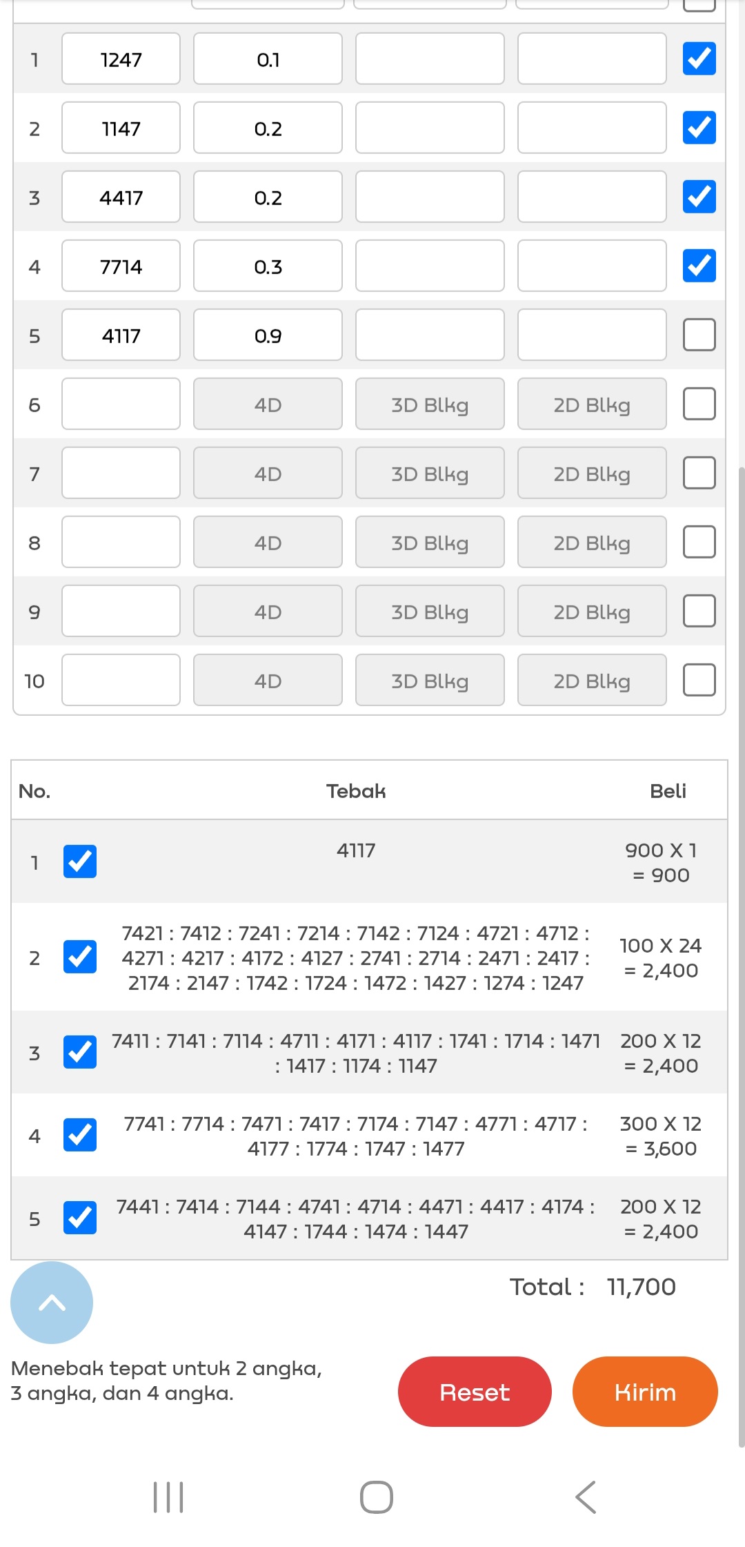 | Rumus Kontrol 4 berdasarkan kepala harian | 3457890 1234678 |