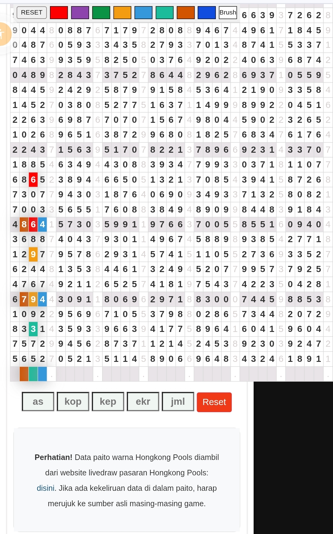 | Rumus Angka Mati berdasarkan kepala harian | 04 05 06 07 08 09 10 15 16 17 18 21 26 28 29 30 31 32 41 42 43 52 53 54 64 65 72 73 75 76 83 84 86 93 94 95 96 97 98 |