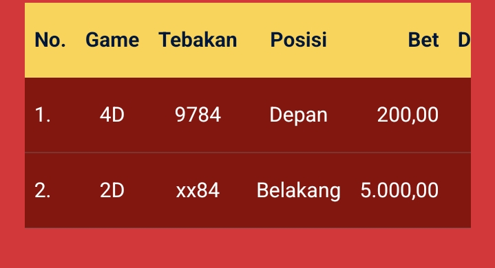 | Rumus Angka Mati berdasarkan kepala harian | 04 05 06 07 08 09 10 15 16 17 18 19 21 26 27 28 29 30 32 37 39 41 42 43 52 53 54 63 64 65 75 76 83 84 86 87 94 95 97 |
