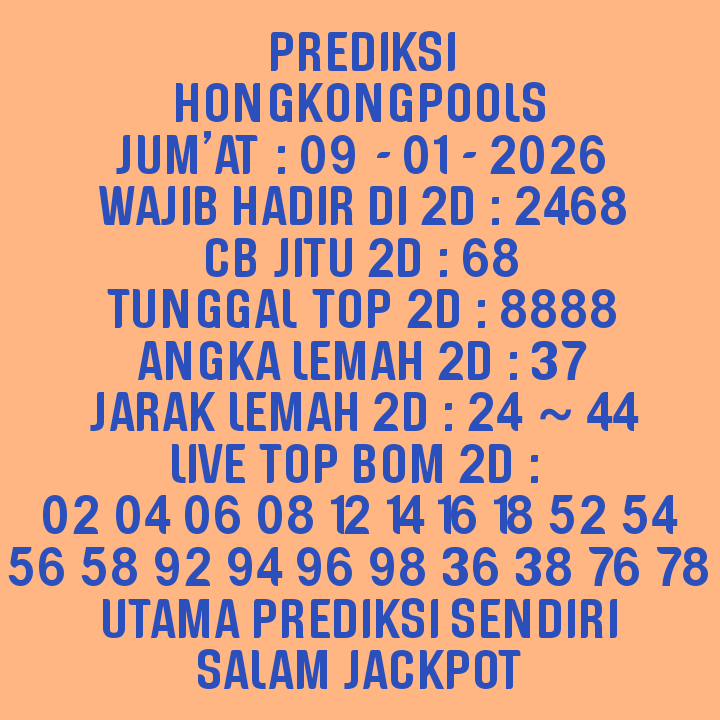 Prediksi HK Sabtu, 31-01-2026 Merupakan Prediksi Otomatis yang menggabungkan Metode Kalender Togel Dengan LN Generator yang akurasi prediksinya sudah kita ketahui bersama. Jadi harap Maklum Jika kadang meleset Prediksi HK kita. Jadikan ini sebagai perbandingan saja dan tetap Utamakan karya sendiri