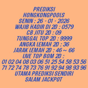 Prediksi HK Kamis, 01-01-2026 Merupakan Prediksi Otomatis yang menggabungkan Metode Kalender Togel Dengan LN Generator yang akurasi prediksinya sudah kita ketahui bersama. Jadi harap Maklum Jika kadang meleset Prediksi HK kita. Jadikan ini sebagai perbandingan saja dan tetap Utamakan karya sendiri