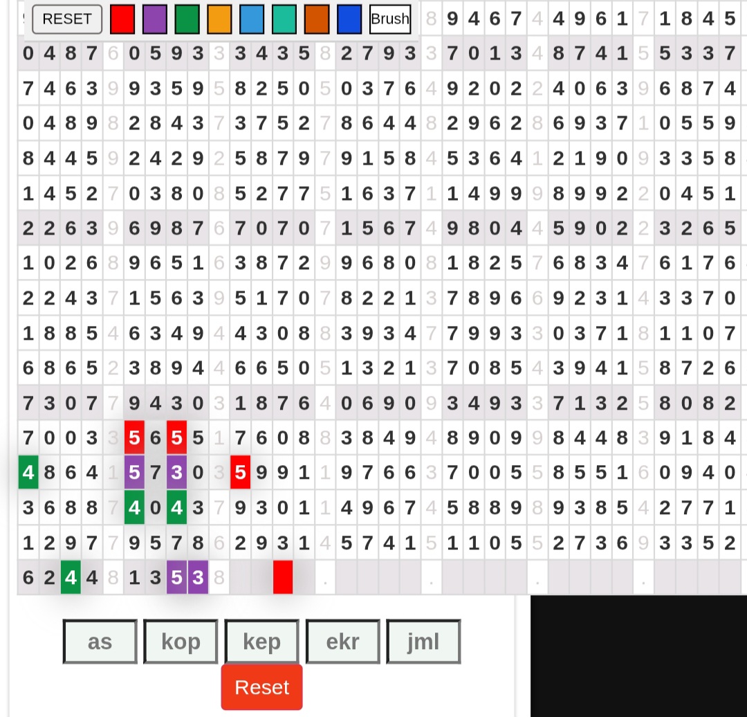 | Rumus Angka Mati berdasarkan kepala harian | 07 08 09 10 18 19 20 21 31 32 38 39 40 42 49 50 51 52 53 54 59 60 61 62 63 64 65 71 72 73 74 76 82 84 85 87 96 97 98 |