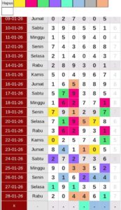 Prediksi HK Jumat, 30-01-2026 Merupakan Prediksi Otomatis yang menggabungkan Metode Kalender Togel Dengan LN Generator yang akurasi prediksinya sudah kita ketahui bersama. Jadi harap Maklum Jika kadang meleset Prediksi HK kita. Jadikan ini sebagai perbandingan saja dan tetap Utamakan karya sendiri