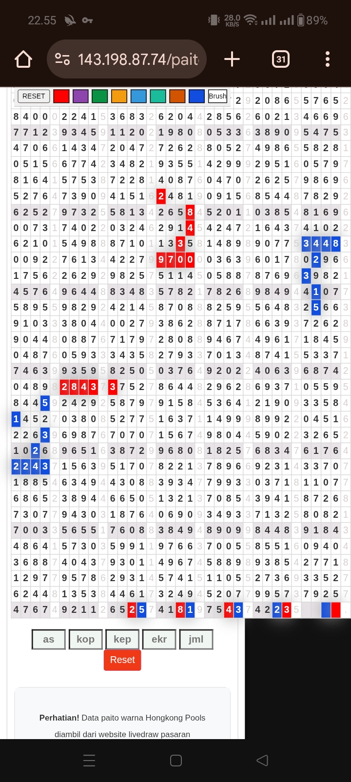 | Rumus Angka Mati berdasarkan kepala harian | 04 05 06 07 08 09 10 15 16 17 18 19 21 26 27 28 29 30 32 37 39 41 42 43 52 53 54 63 64 65 75 76 83 84 86 87 94 95 97 |