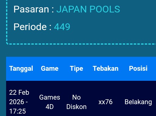 Selamat Bergabung kembali bersama angkanet dalam room Prediksi Japan. Untuk kenyamanan dalam berprediksi, kami melarang adanya posting nomor WA, Web atau FB. Angkanet juga tidak pernah menjual prediksi, software, atau aplikasi togel lainnya. Berprediksilah secara damai dan elegan. Terima kasih telah menjadi pengunjung setia angkanet