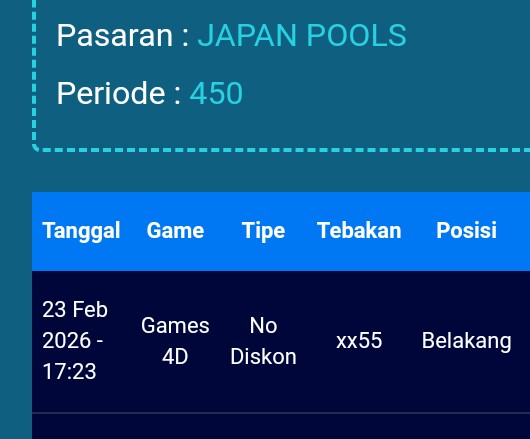 Selamat Bergabung kembali bersama angkanet dalam room Prediksi Japan. Untuk kenyamanan dalam berprediksi, kami melarang adanya posting nomor WA, Web atau FB. Angkanet juga tidak pernah menjual prediksi, software, atau aplikasi togel lainnya. Berprediksilah secara damai dan elegan. Terima kasih telah menjadi pengunjung setia angkanet