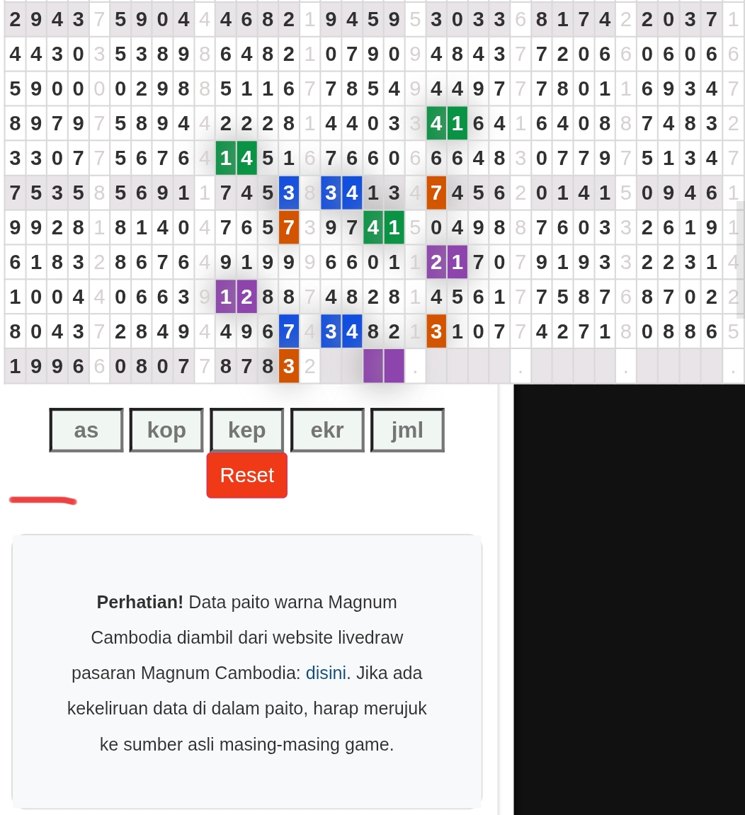 Selamat Bergabung kembali bersama angkanet dalam room Prediksi Magnum Cambodia. Untuk kenyamanan dalam berprediksi, kami melarang adanya posting nomor WA, Web atau FB. Angkanet juga tidak pernah menjual prediksi, software, atau aplikasi togel lainnya. Berprediksilah secara damai dan elegan. Terima kasih telah menjadi pengunjung setia angkanet