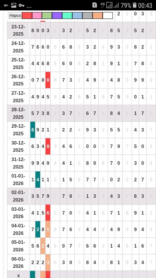 | Rumus Kontrol 4 berdasarkan kepala harian | 1456890 2345789 |