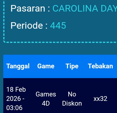 Prediksi North Carolina Day Rabu, 11-02-2026 Merupakan Prediksi Otomatis yang menggabungkan Metode Kalender Togel Dengan LN Generator yang akurasi prediksinya sudah kita ketahui bersama. Jadi harap Maklum Jika kadang meleset Prediksi North Carolina Day kita. Jadikan ini sebagai perbandingan saja dan tetap Utamakan karya sendiri