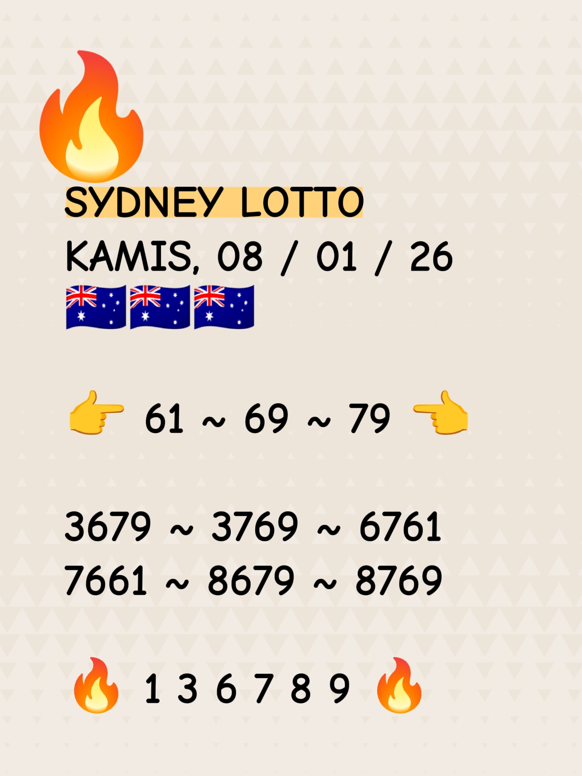 Prediksi Sydney Lotto Jumat, 30-01-2026 | |