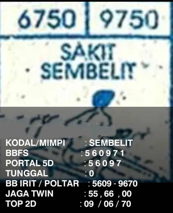 | Rumus Angka Mati berdasarkan kepala harian | 05 06 08 10 15 16 17 18 19 20 21 26 27 28 29 30 32 37 38 39 40 41 43 48 52 53 54 63 64 65 74 75 76 86 87 94 95 97 98 |