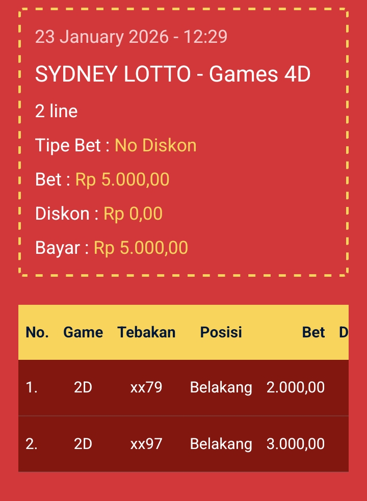 Prediksi Sydney Lotto Kamis, 29-01-2026 | |