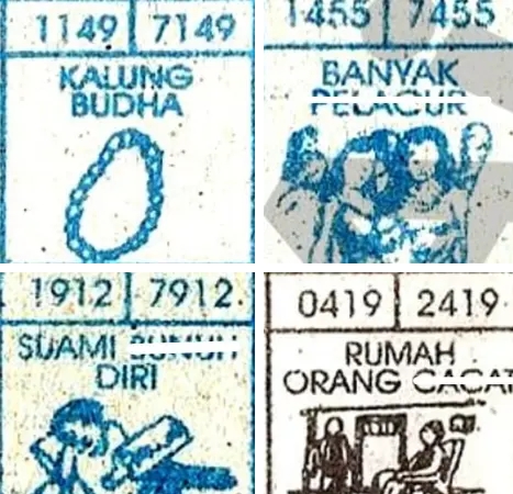 | Rumus Angka Mati berdasarkan kepala harian | 04 05 06 07 08 09 10 15 16 17 18 19 21 26 27 28 29 30 32 37 39 41 42 43 52 53 54 63 64 65 75 76 83 84 86 87 94 95 97 |