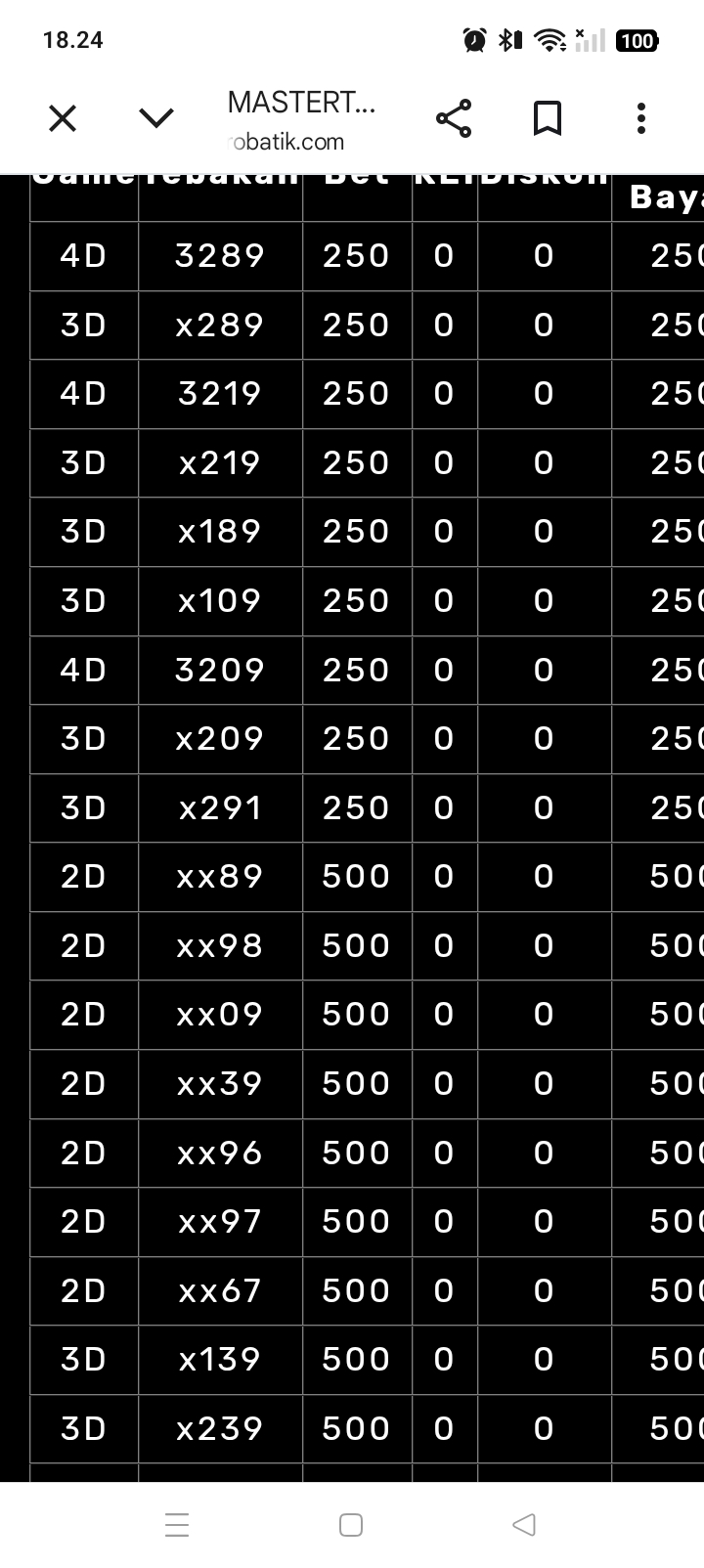 | Rumus Angka Mati berdasarkan kepala harian | 05 06 08 10 15 16 17 18 19 20 21 26 27 28 29 30 32 37 38 39 40 41 43 48 52 53 54 63 64 65 74 75 76 86 87 94 95 97 98 |
