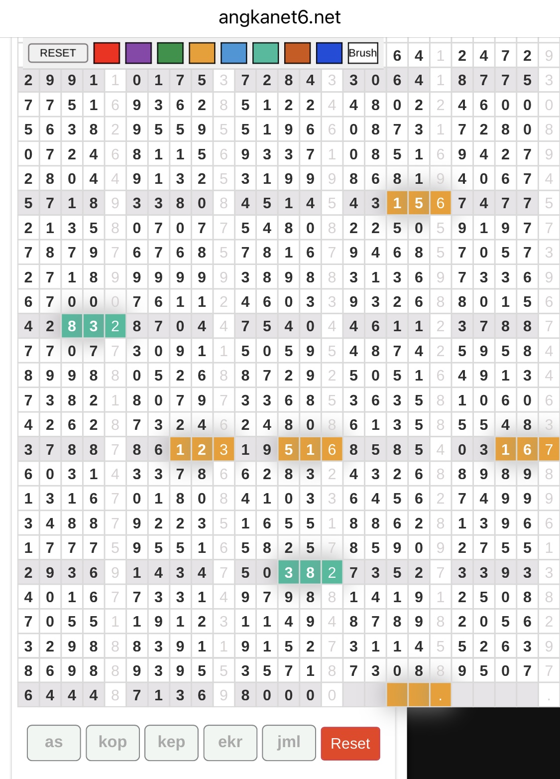 | Rumus Angka Mati berdasarkan kepala harian | 04 05 06 07 09 10 15 17 18 20 21 29 30 31 32 41 42 43 53 54 61 62 64 65 72 73 75 82 83 84 85 86 87 93 94 95 96 97 98 |