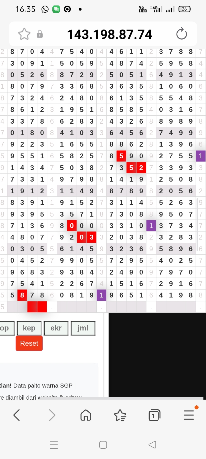 | Rumus Angka Mati berdasarkan kepala harian | 04 05 06 07 08 09 10 15 16 17 18 21 26 28 29 30 31 32 41 42 43 52 53 54 64 65 72 73 75 76 83 84 86 93 94 95 96 97 98 |