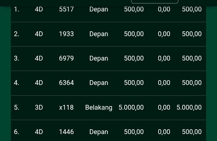 | Rumus Kontrol 4 berdasarkan kepala harian | 1456890 2345789 |