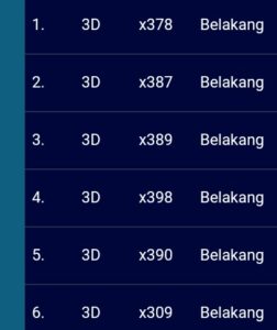 | Rumus Angka Mati berdasarkan kepala harian | 04 05 06 07 08 09 10 15 16 17 18 19 21 26 27 28 29 30 32 37 39 41 42 43 52 53 54 63 64 65 75 76 83 84 86 87 94 95 97 |