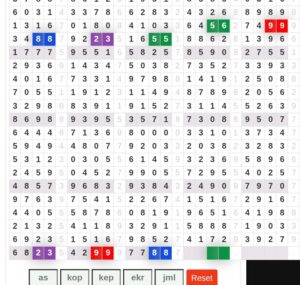 | Rumus Angka Mati berdasarkan kepala harian | 04 05 06 07 09 10 15 17 18 20 21 29 30 31 32 41 42 43 53 54 61 62 64 65 72 73 75 82 83 84 85 86 87 93 94 95 96 97 98 |