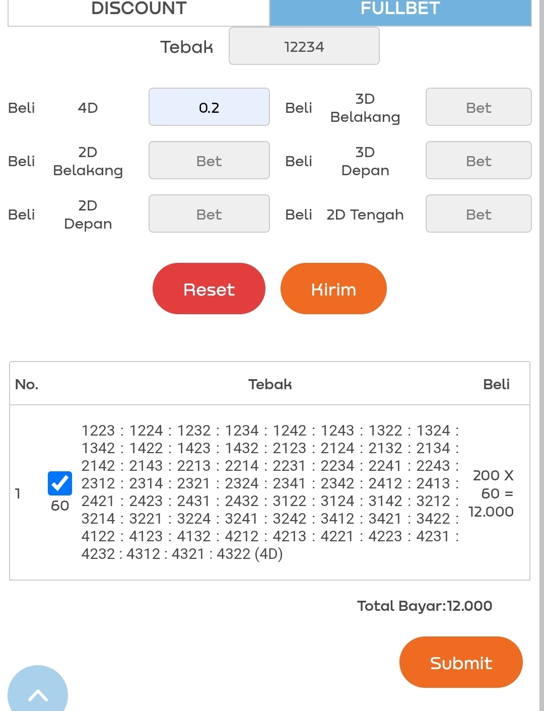| Rumus Kontrol 4 berdasarkan kepala harian | 2345890 1236789 |