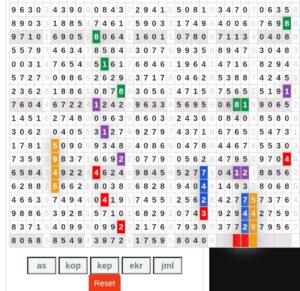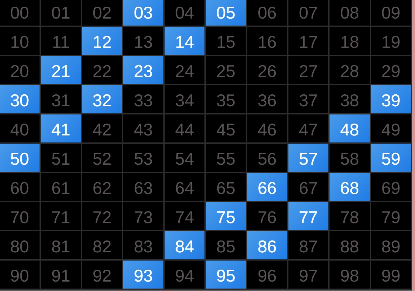 | Rumus Angka Mati berdasarkan kepala harian | 05 06 08 09 16 17 19 20 21 26 27 28 29 30 31 32 37 38 39 40 41 43 48 49 51 52 54 59 63 64 65 74 75 76 85 86 87 97 98 |