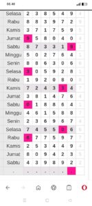 | Rumus Angka Mati berdasarkan kepala harian | 05 06 08 09 16 17 19 20 21 26 27 28 29 30 31 32 37 38 39 40 41 43 48 49 51 52 54 59 63 64 65 74 75 76 85 86 87 97 98 |