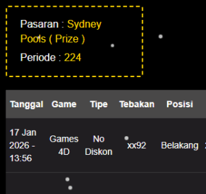 Prediksi Sydneypools Sabtu, 31-01-2026 Merupakan Prediksi Otomatis yang menggabungkan Metode Kalender Togel Dengan LN Generator yang akurasi prediksinya sudah kita ketahui bersama. Jadi harap Maklum Jika kadang meleset Prediksi Sydneypools kita. Jadikan ini sebagai perbandingan saja dan tetap Utamakan karya sendiri