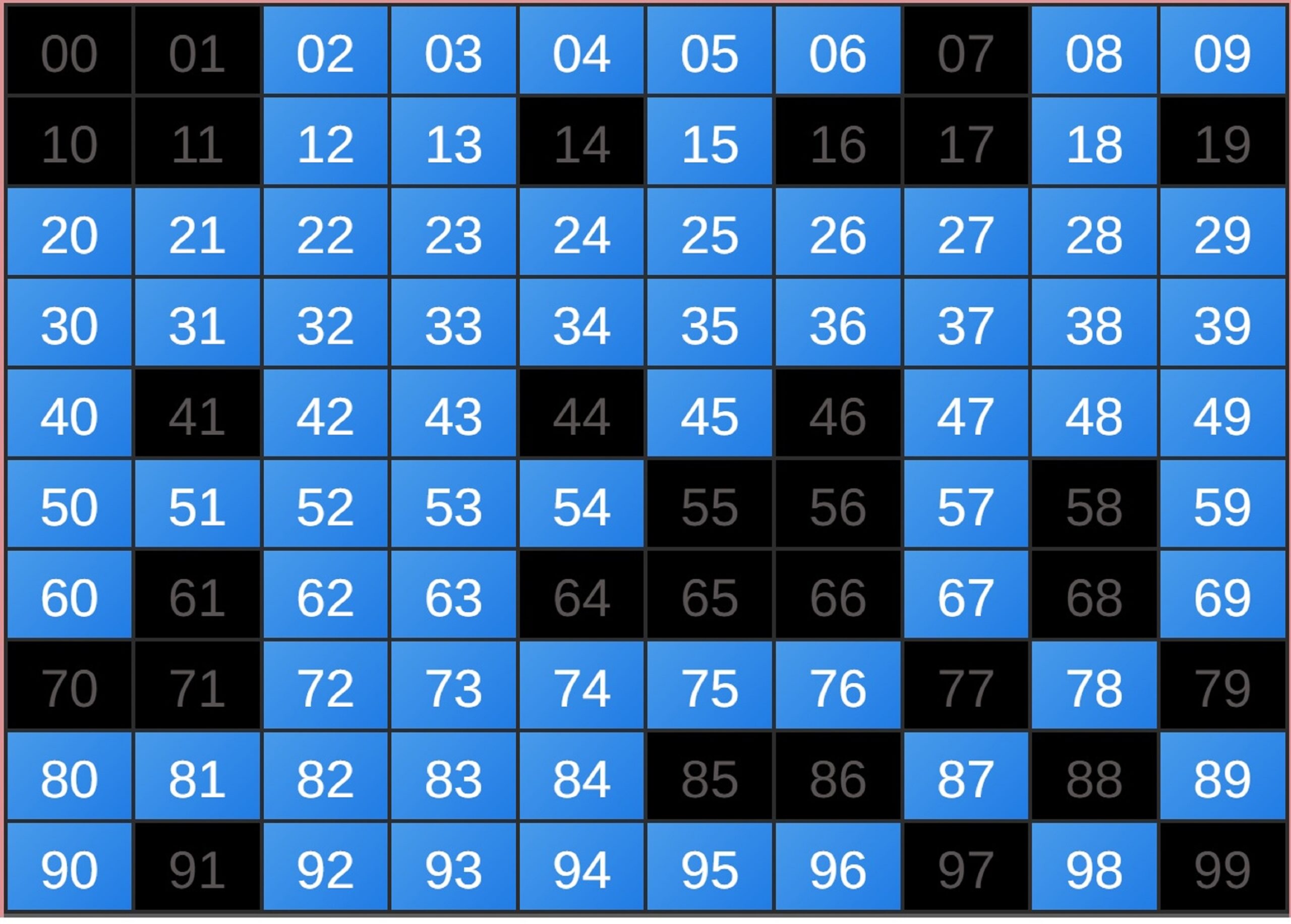 | Rumus Angka Mati berdasarkan kepala harian | 05 06 08 09 16 17 19 20 21 26 27 28 29 30 31 32 37 38 39 40 41 43 48 49 51 52 54 59 63 64 65 74 75 76 85 86 87 97 98 |