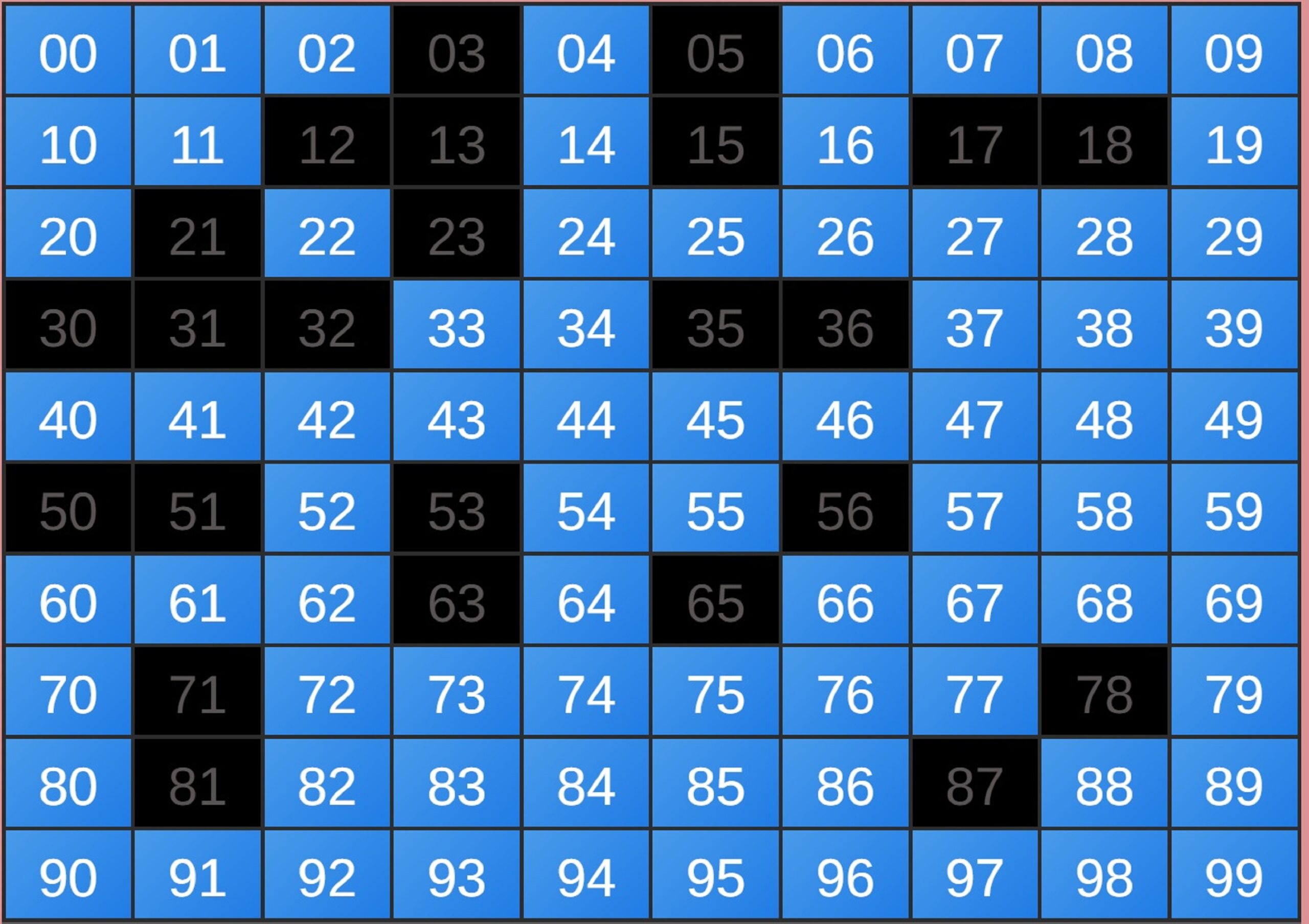 97, 96, 17, 16, 27, 26, 07, 06