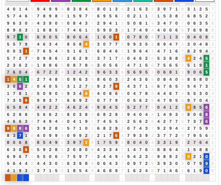 | Rumus Angka Mati berdasarkan kepala harian | 04 05 06 07 08 09 10 15 16 17 18 21 26 28 29 30 31 32 41 42 43 52 53 54 64 65 72 73 75 76 83 84 86 93 94 95 96 97 98 |