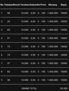 | Rumus Angka Mati berdasarkan kepala harian | 05 06 08 10 15 16 17 18 19 20 21 26 27 28 29 30 32 37 38 39 40 41 43 48 52 53 54 63 64 65 74 75 76 86 87 94 95 97 98 |