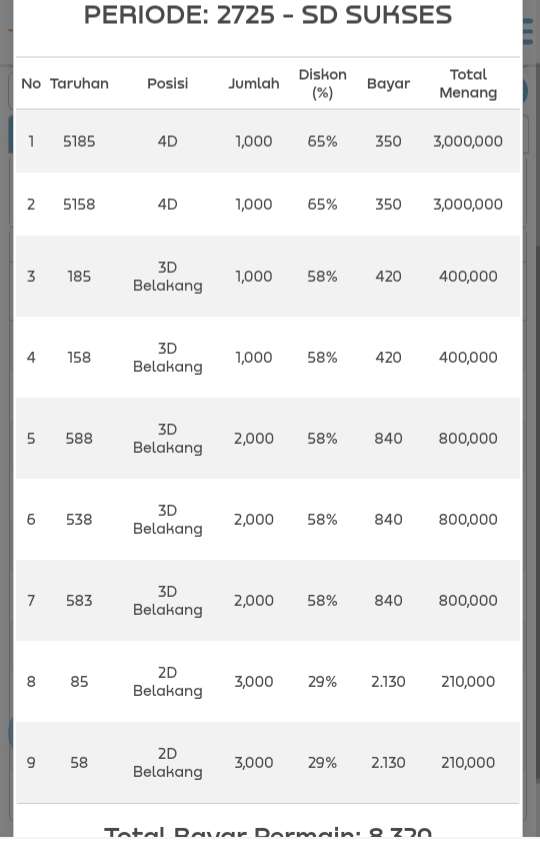 Prediksi Ini Berubah secara otomatis sesuai hari dan result pasaran masing-masing. Untuk melihat prediksi sebelumnya klik tombol nomor hitam diatas