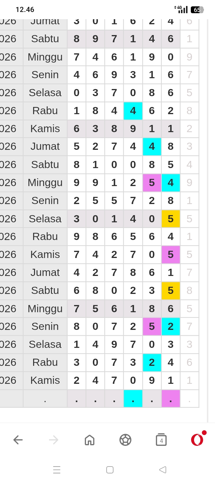 | Rumus Kontrol 4 berdasarkan kepala harian | 3457890 1234678 |