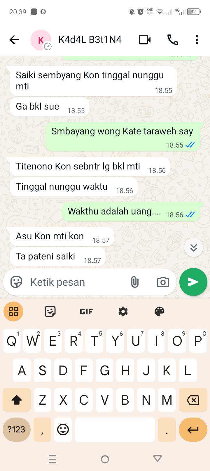 Jangkrek krek ngerti ae aku Kate di pateni Karo arek wedok