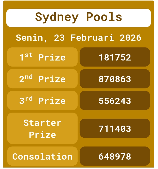 Prediksi Sydneypools Selasa, 24-02-2026 Merupakan Prediksi Otomatis yang menggabungkan Metode Kalender Togel Dengan LN Generator yang akurasi prediksinya sudah kita ketahui bersama. Jadi harap Maklum Jika kadang meleset Prediksi Sydneypools kita. Jadikan ini sebagai perbandingan saja dan tetap Utamakan karya sendiri