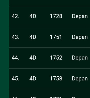 | Rumus Angka Mati berdasarkan kepala harian | 07 08 09 10 18 19 20 21 31 32 38 39 40 42 49 50 51 52 53 54 59 60 61 62 63 64 65 71 72 73 74 76 82 84 85 87 96 97 98 |