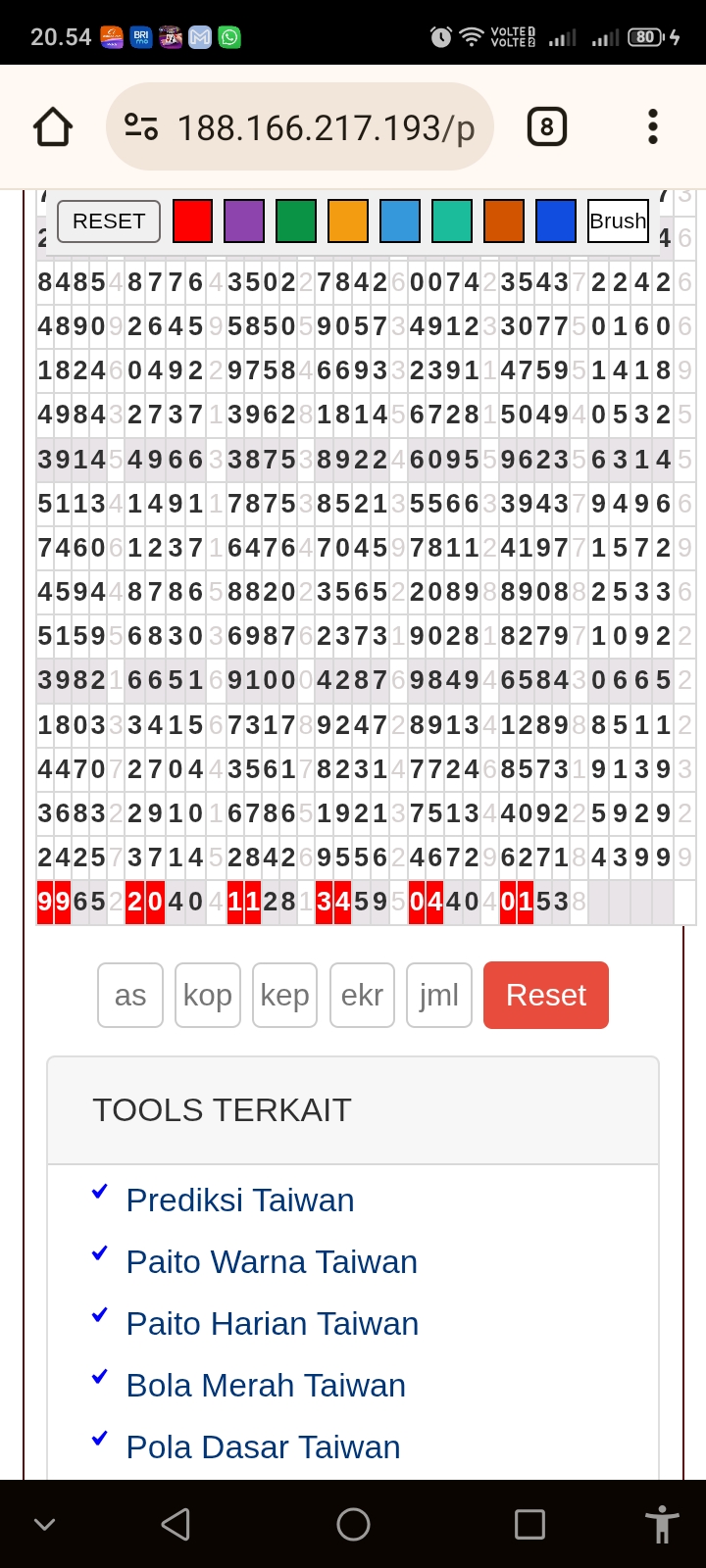 | Rumus Angka Mati berdasarkan kepala harian | 07 08 09 10 18 19 20 21 29 31 32 40 42 43 49 50 51 53 60 61 62 63 64 65 71 72 73 74 75 76 82 83 84 85 87 93 95 96 98 |