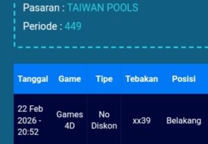 Prediksi Taiwan Minggu, 25-01-2026 Merupakan Prediksi Otomatis yang menggabungkan Metode Kalender Togel Dengan LN Generator yang akurasi prediksinya sudah kita ketahui bersama. Jadi harap Maklum Jika kadang meleset Prediksi Taiwan kita. Jadikan ini sebagai perbandingan saja dan tetap Utamakan karya sendiri