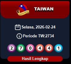 Prediksi Taiwan Rabu, 25-02-2026 Merupakan Prediksi Otomatis yang menggabungkan Metode Kalender Togel Dengan LN Generator yang akurasi prediksinya sudah kita ketahui bersama. Jadi harap Maklum Jika kadang meleset Prediksi Taiwan kita. Jadikan ini sebagai perbandingan saja dan tetap Utamakan karya sendiri