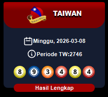 Prediksi Taiwan Senin, 09-02-2026 Merupakan Prediksi Otomatis yang menggabungkan Metode Kalender Togel Dengan LN Generator yang akurasi prediksinya sudah kita ketahui bersama. Jadi harap Maklum Jika kadang meleset Prediksi Taiwan kita. Jadikan ini sebagai perbandingan saja dan tetap Utamakan karya sendiri